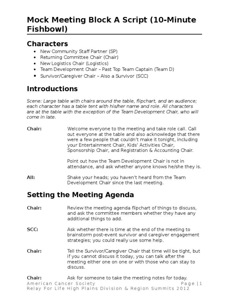 Relay for life meeting @ social hall. Relay for life meeting monday, april 16, 2007 8:00 pm central office—shuttle room 525 half hollow road meeting agenda • turn in any money collected (registration, donations and luminaria) • relay update • paint the town purple The agenda also serves as a reminder to the committee and all speakers of their Steubenville — tonight's planning meeting for the 2019 jefferson county relay for life will include discussion on having an open house type event to promote the fundraiser that benefits american cancer society research and programs. Tuesday, february 5, 2019, at 5:00 p.m.